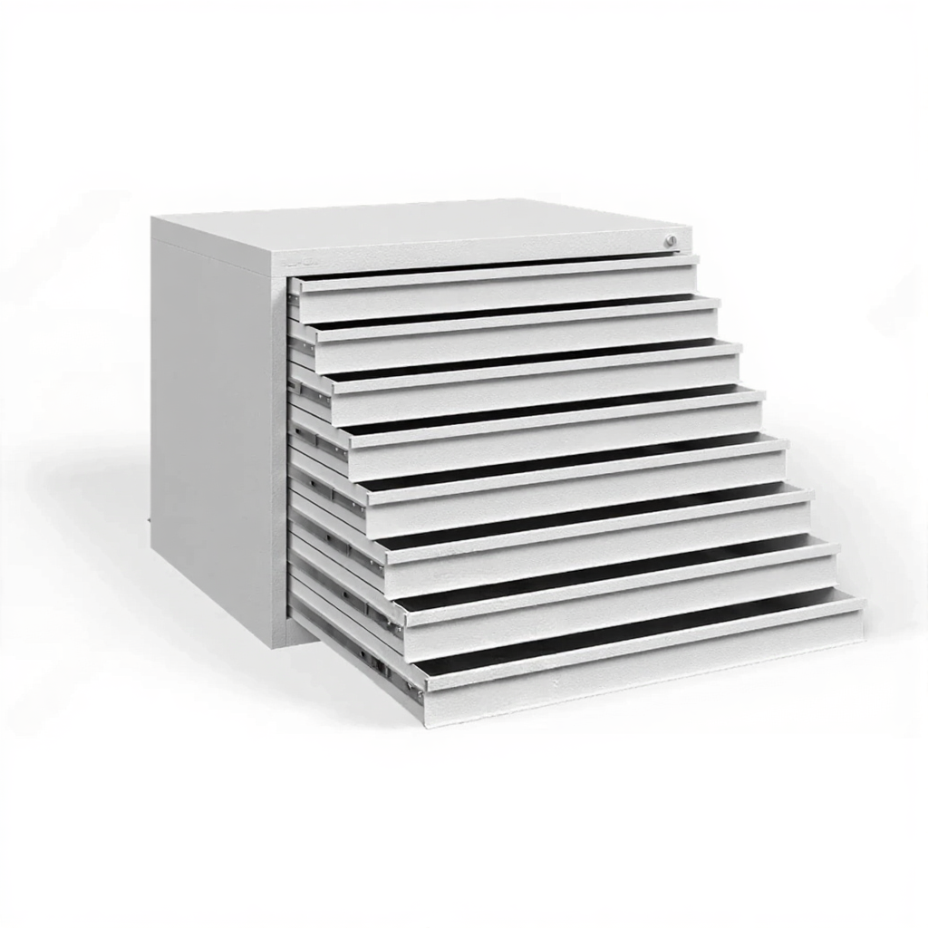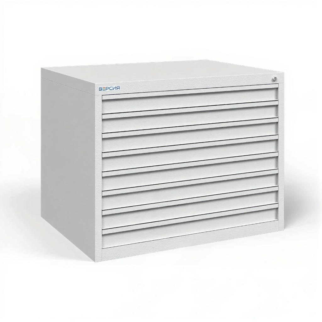 - Оптимальный формат хранения для чертежей А1 — шкаф специально разработан для документов формата А1 (594x841 мм). Внутренние планшеты обеспечивают безопасное горизонтальное хранение, предотвращая сминание, загибы и повреждение ценных оригиналов чертежей и плакатов.