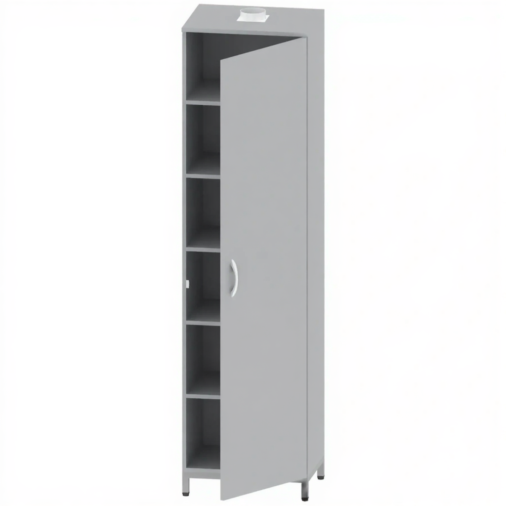 Шкаф для химических реактивов односекционный СТЕ-ШП-30 предназначен для безопасного и организованного хранения химических реактивов в лабораториях медицинских, образовательных и научно-исследовательских учреждений. Модель оснащена пятью полками из ЛДСП, замком, фланцем D=100 мм для подключения к вытяжной вентиляции и вентиляционным каналом для удаления едких паров. Каркас выполнен из стального профиля, корпус из ЛДСП.