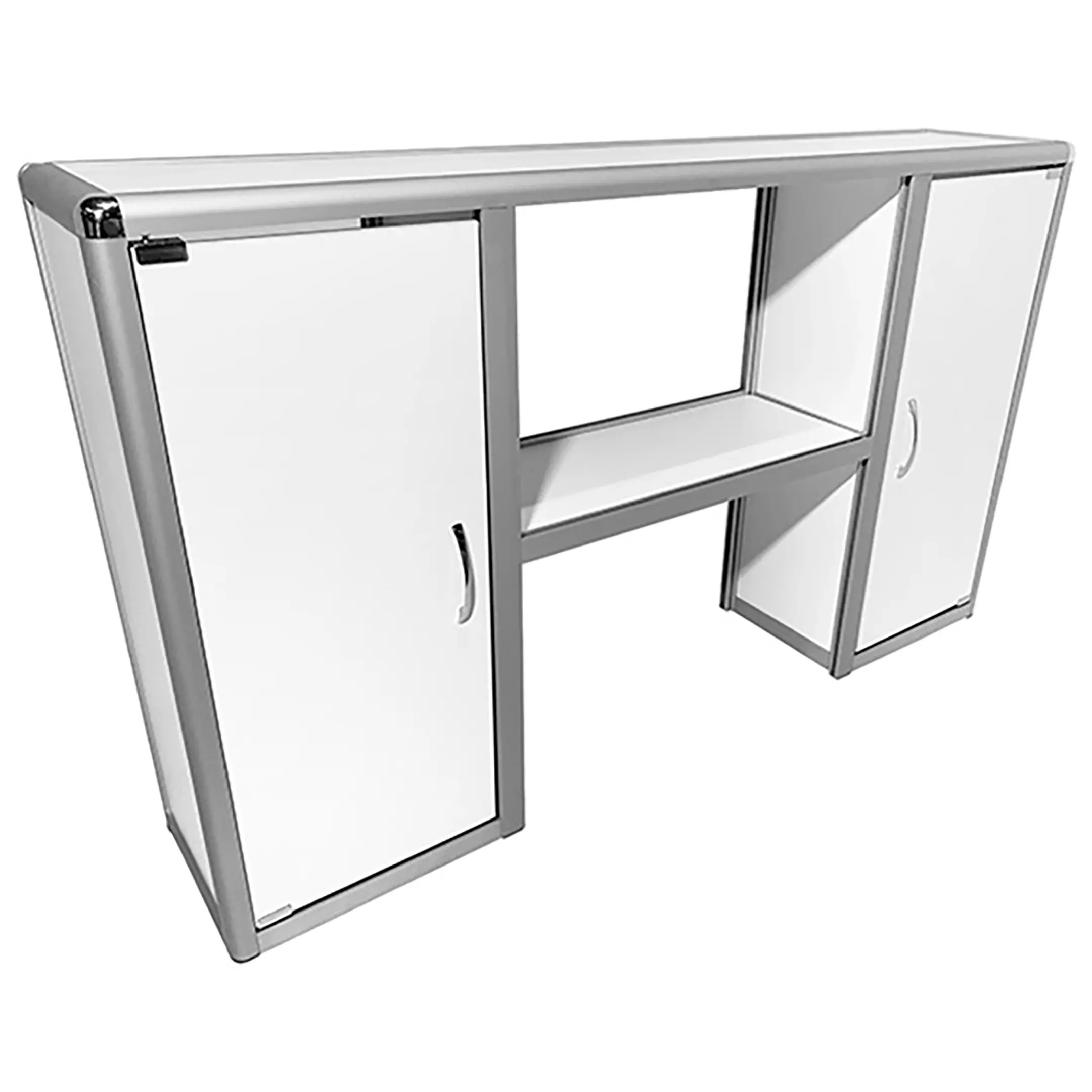 Надстройка стола лабораторного MED 15.005al (белый) — это функциональный элемент для организации рабочего пространства в лабораториях, предназначенный для установки на лабораторные столы серии MED 10al шириной 1200 мм. Модель оснащена двумя полками и двумя тумбами с распашными дверцами по бокам, что обеспечивает удобное хранение лабораторного оборудования и принадлежностей. Каркас выполнен из алюминиевого профиля, гарантирующего легкость и прочность конструкции.