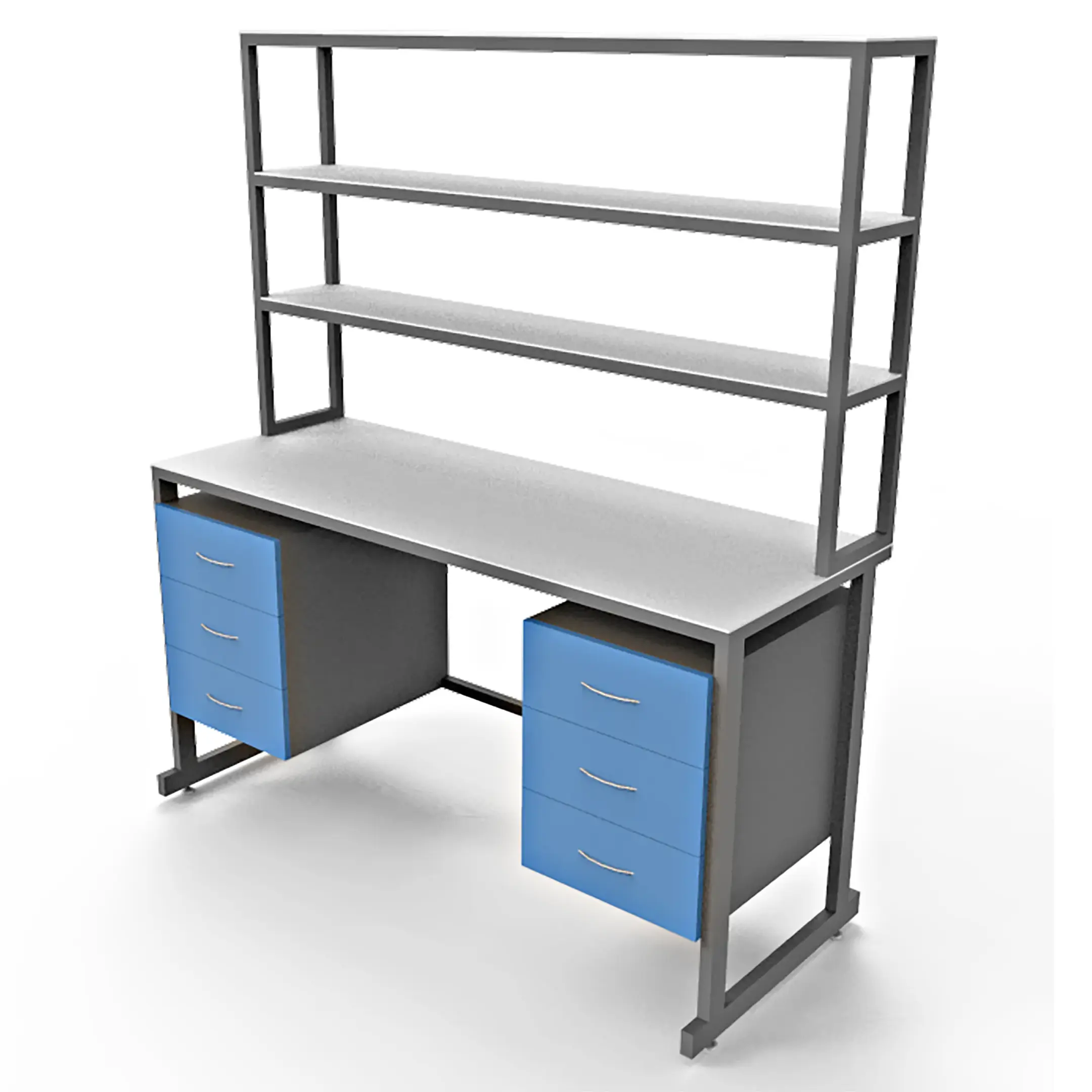 - Функциональная надстройка — три полки для дополнительного размещения оборудования и материалов, общая высота стола с надстройкой 1850 мм.