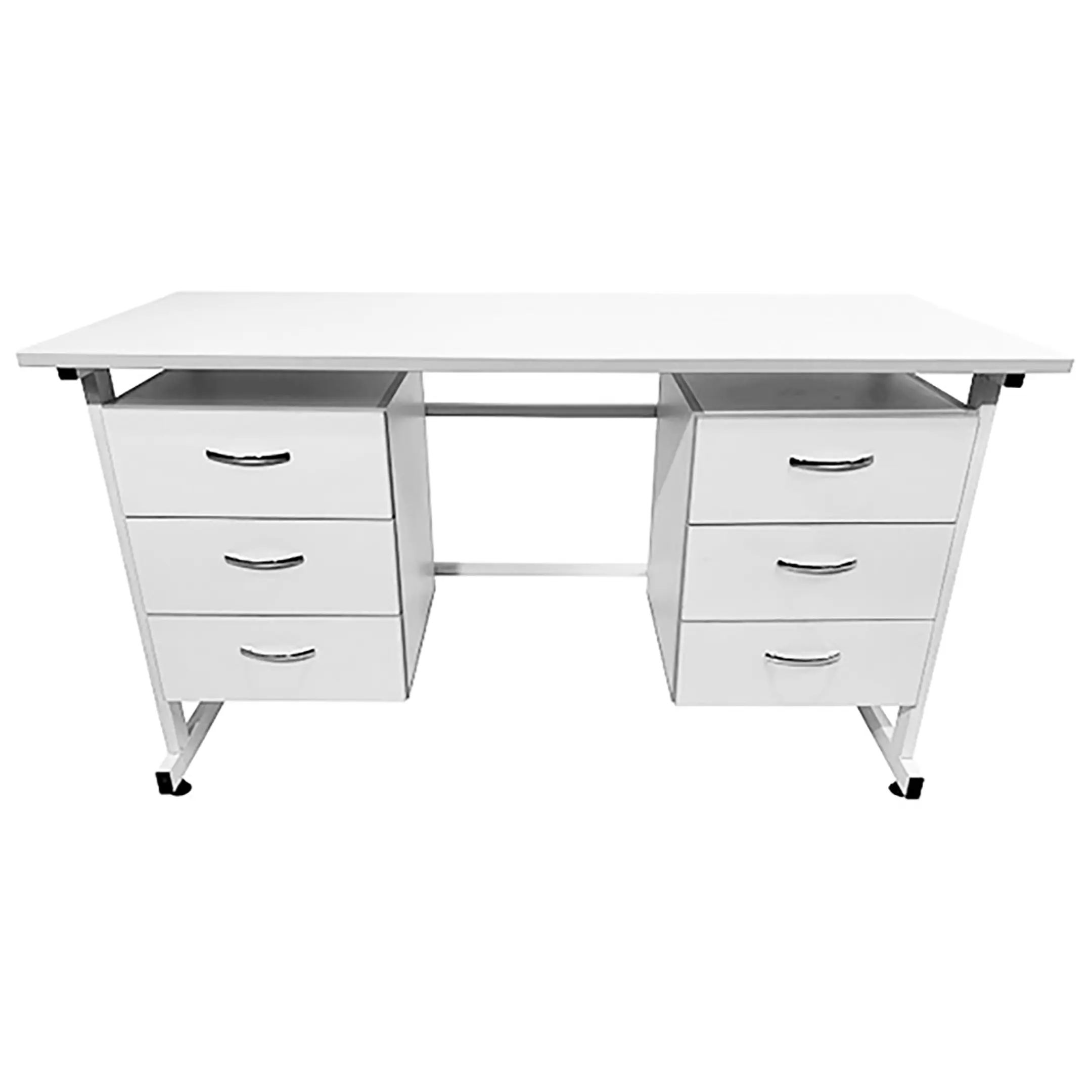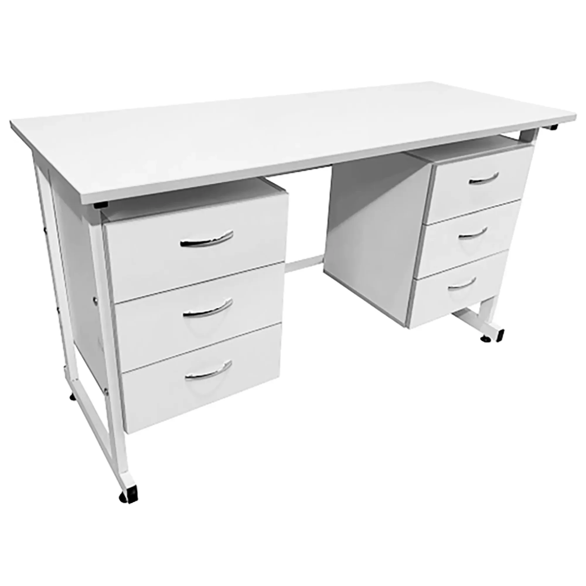 Стол лабораторный СЛ 12.006 (белый) — это отличное решение для организации комфортного и функционального рабочего места сотрудников в лабораториях. Модель оснащена подвесными тумбами с тремя выдвижными ящиками. Каркас выполнен из стального профиля, столешница из ЛДСП толщиной 22 мм.