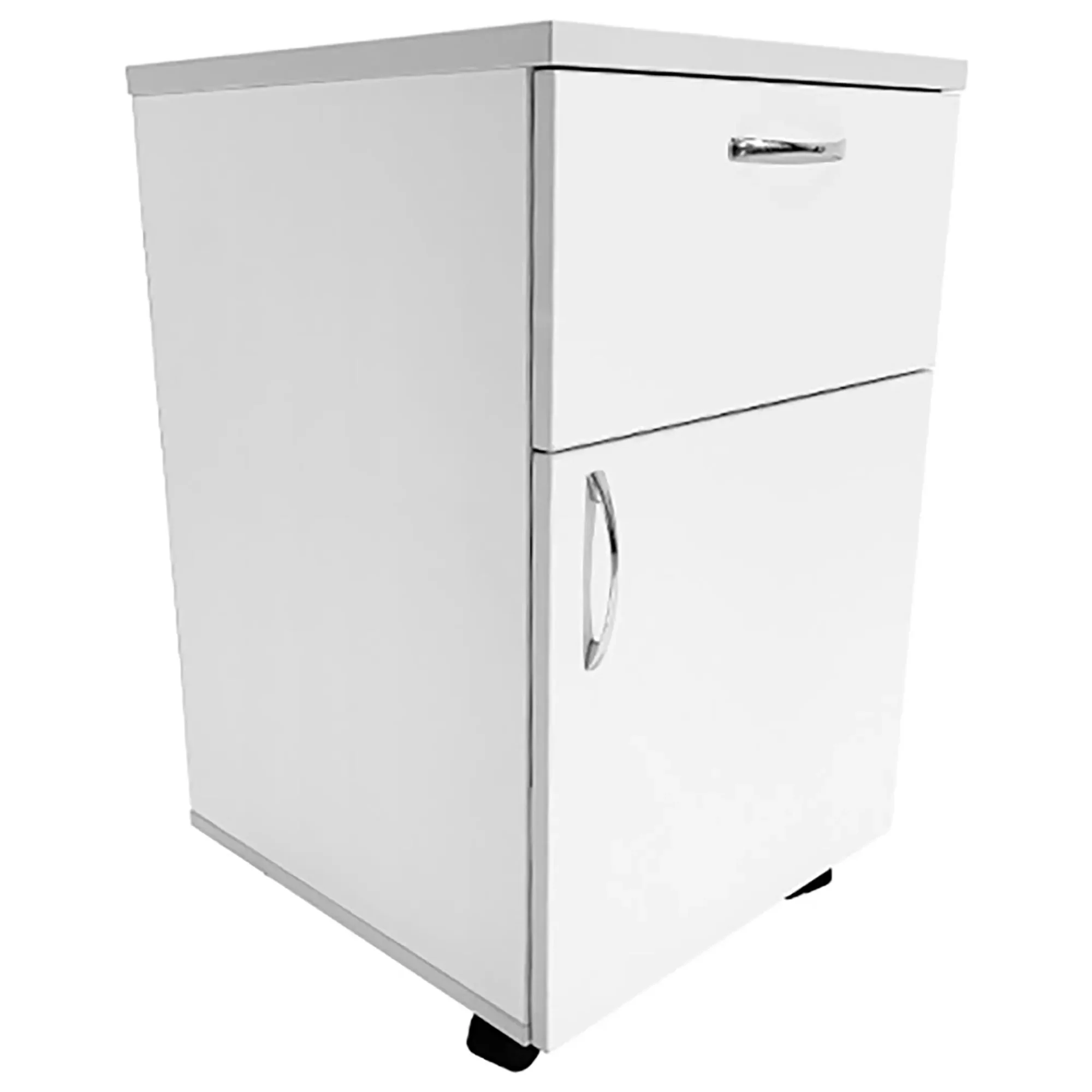 - Легкость перемещения — пластиковые ножки с колесными опорами диаметром 50 мм позволяют легко перемещать тумбу и фиксировать ее в нужном положении.