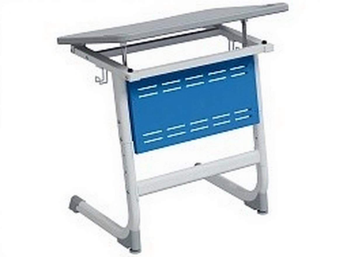 Стол 1-местный школьный 5-7 г/р "Логика" PL с наклоном столешницы 0-15° и перфорированным экраном (серый/синий, м/к белый)