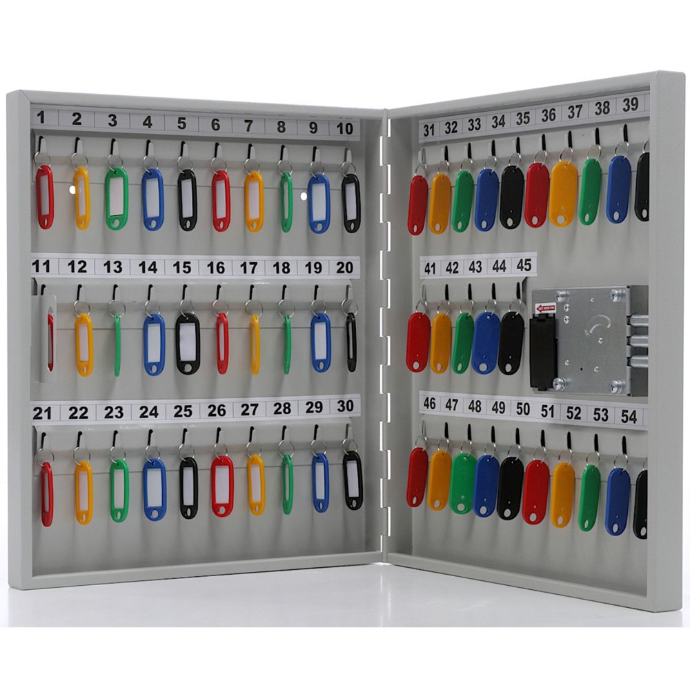 Ключница KEY-55EL (с брелками) — это надежная настенная система для организованного хранения и защиты ключей от несанкционированного доступа в учреждениях среднего размера. Прочный металлический корпус с электронным кодовым замком обеспечивает безопасное и упорядоченное хранение до 55 ключей.