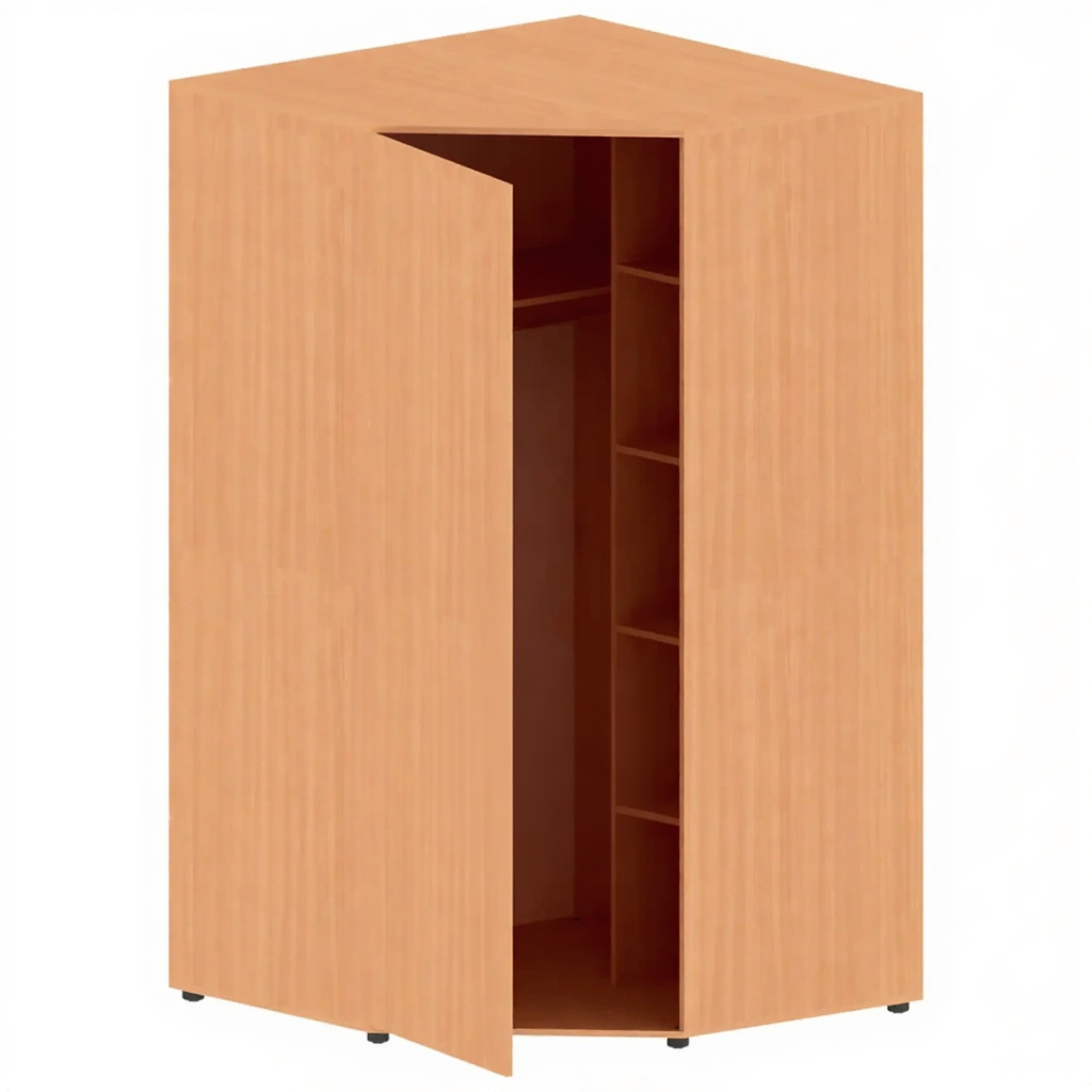 Шкаф для одежды угловой СТ-ШП-107 — это функциональное решение для хранения одежды в образовательных, спортивных, офисных и других учреждениях, позволяющее эффективно использовать угловое пространство помещения. Модель изготовлена из качественной ЛДСП толщиной 16 мм, имеет одну распашную дверь и продуманное внутреннее наполнение.