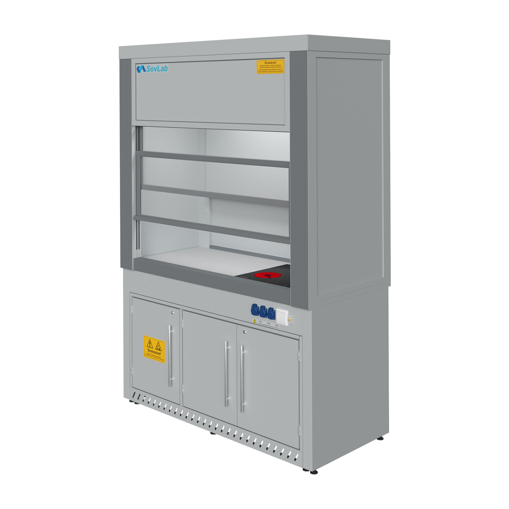 Шкаф вытяжной с нагревательной поверхностью Моd. 1500 ШВНП — это специализированное лабораторное оборудование, предназначенное для безопасной работы с кислотами и агрессивными реактивами, требующими нагрева или термической обработки. Модель оснащена встроенной стеклокерамической нагревательной поверхностью, установленной заподлицо в рабочую столешницу из химически стойкой керамогранитной плитки. Конструкция обеспечивает надежную защиту персонала при работе с летучими, токсичными и химически активными соединениями в условиях высоких температур.