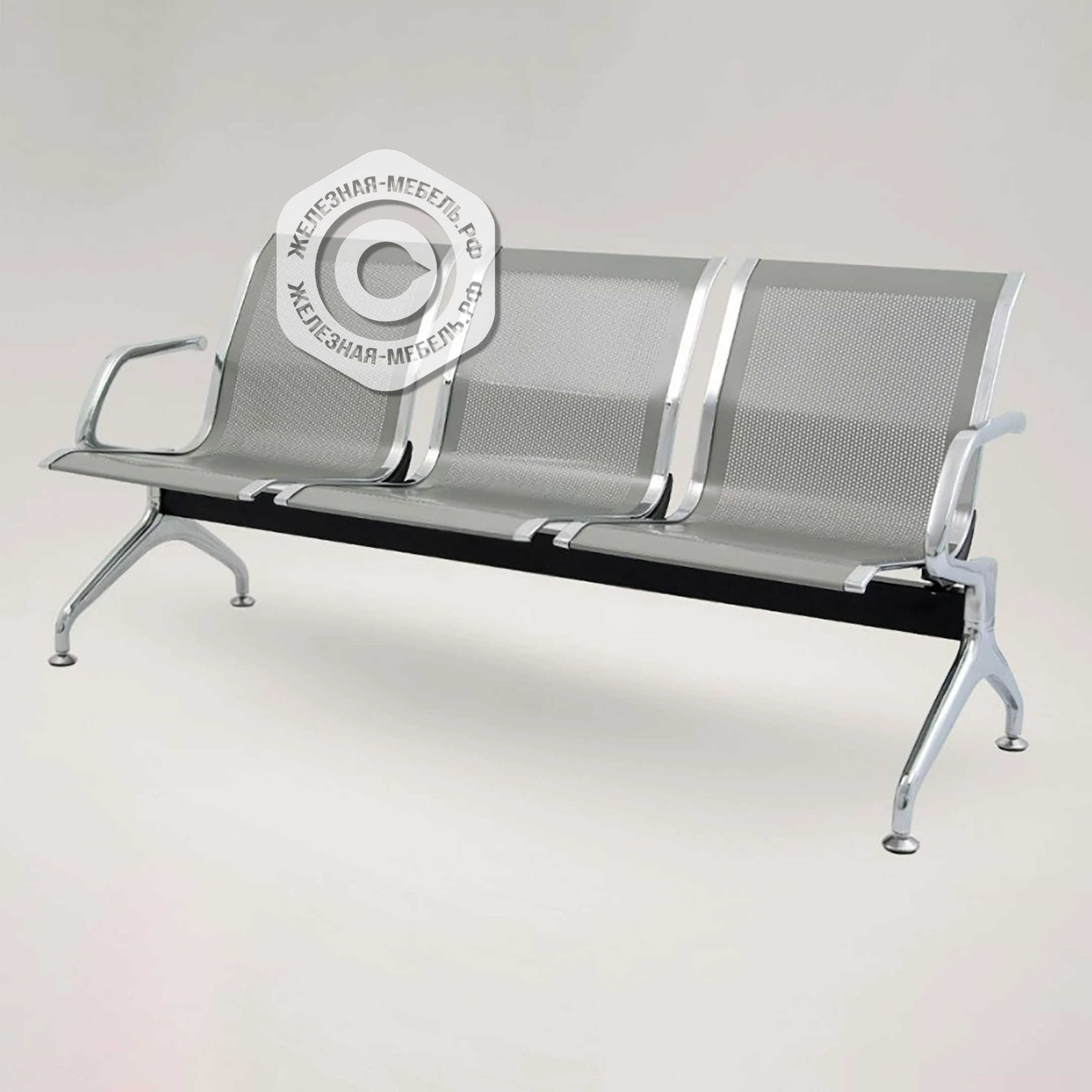 Стоимость указана за модель с покрытием металлокаркаса: балка - RAL 9005 "черный муар", перфорация - RAL 7001 "серый" и с хромированными элементами (подлокотники, опоры и окантовка сидений). Все варианты окрашивания металлических каркасов на последних фото.