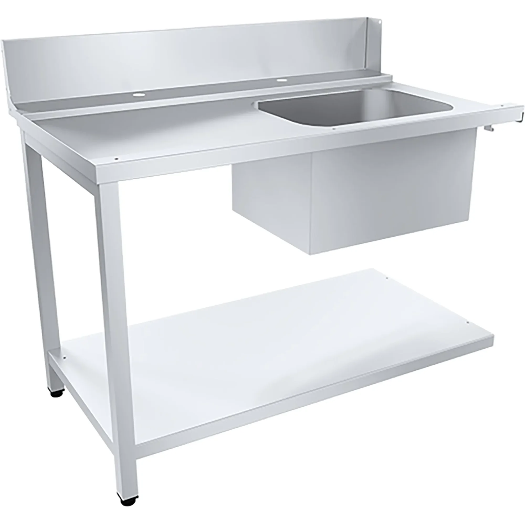 Стол для посудомоечной машины для грязной посуды СРОп-ГП 850х1200х720 мм предназначен для сбора пищевых отходов, предварительной мойки посуды, инвентаря, стаканов и загрузки кассеты для мытья в машину.