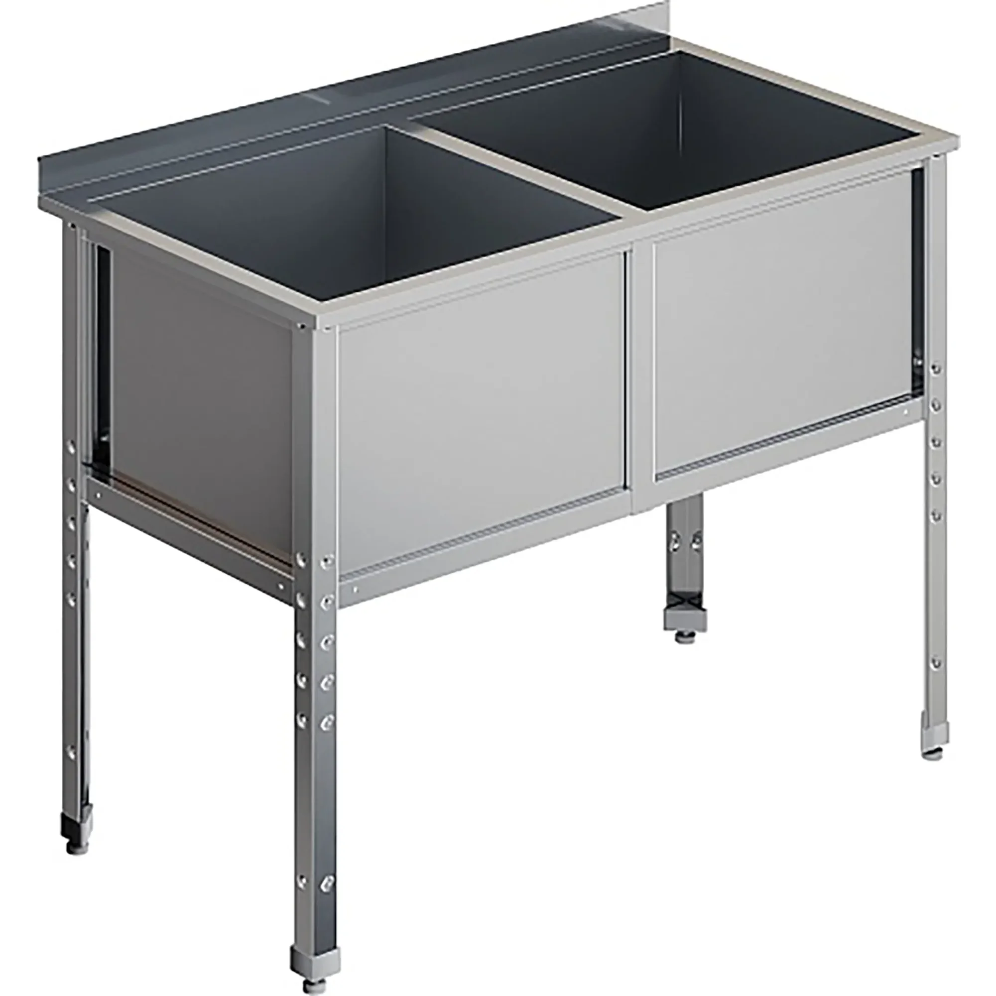 Ванна моечная двухсекционная с бортом ВМС-2/7-Б-ЭН разработана для применения в моечных отделениях предприятий общепита и торговли различного формата, пищевых производств и пищеблоков для мытья посуды, кухонного инвентаря, продуктов питания и рук персонала.
