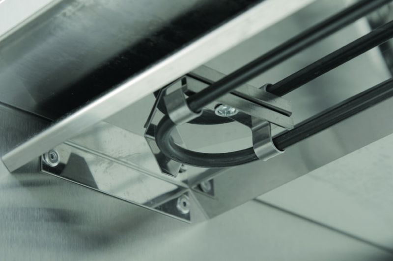 - Привод вращения вертела с автоматическим тормозом — предотвращает самопроизвольный проворот вертела при загрузке и выгрузке продукции.