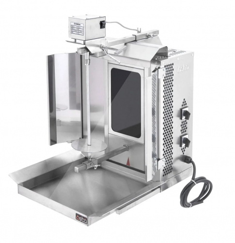 Гриль для шаурмы OSBA MED-02E — это профессиональное оборудование для предприятий общественного питания, предназначенное для обжарки мясных заготовок цилиндрической формы, которые размещаются на вертикальный вертел. Модель используется на кухнях различных заведений: от ресторанов до точек быстрого питания.