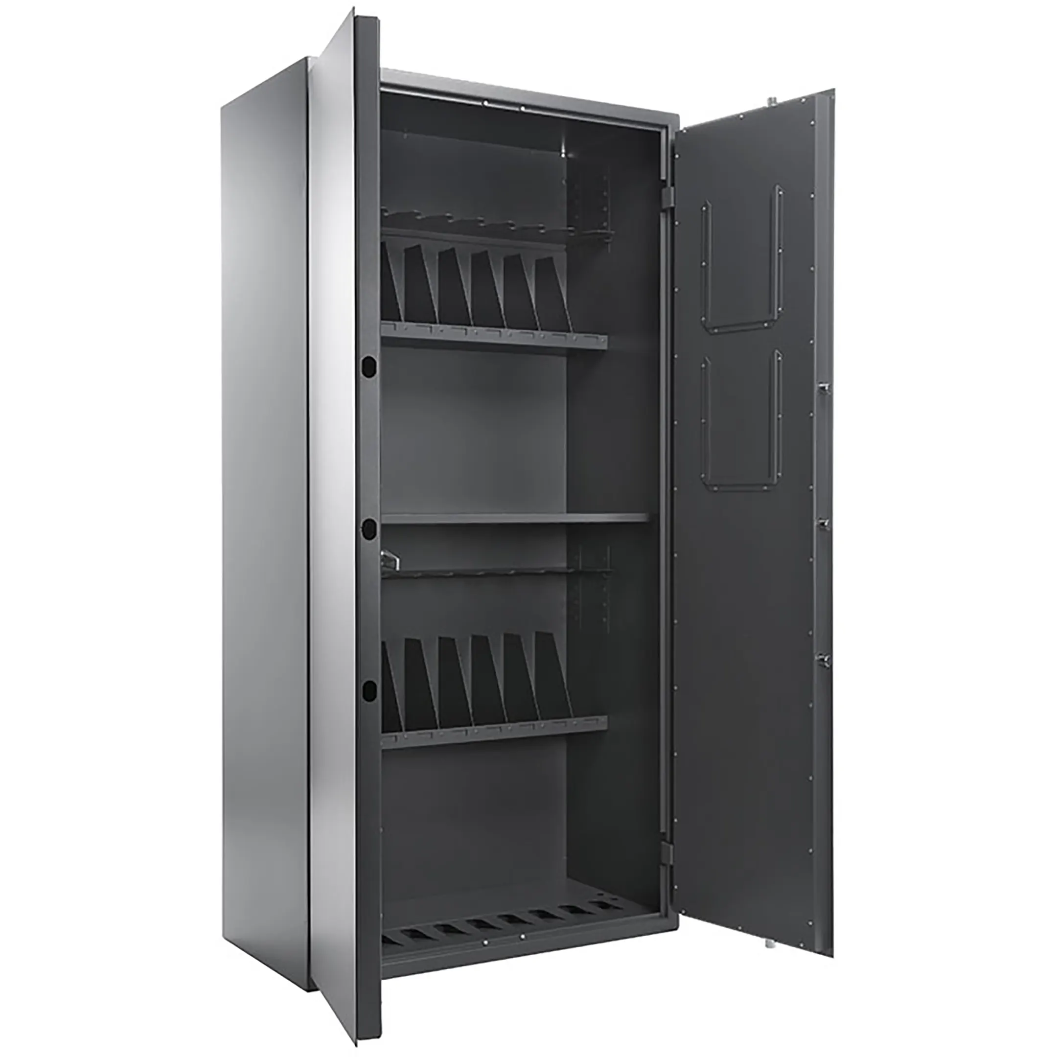 • оборудован 6-тью съемными полками (2 под приклад,2 под цевье,2 под магазины). Конструкция полок обеспечивает гарантированно надежное и устойчивое положение за счет собственного веса оружия;