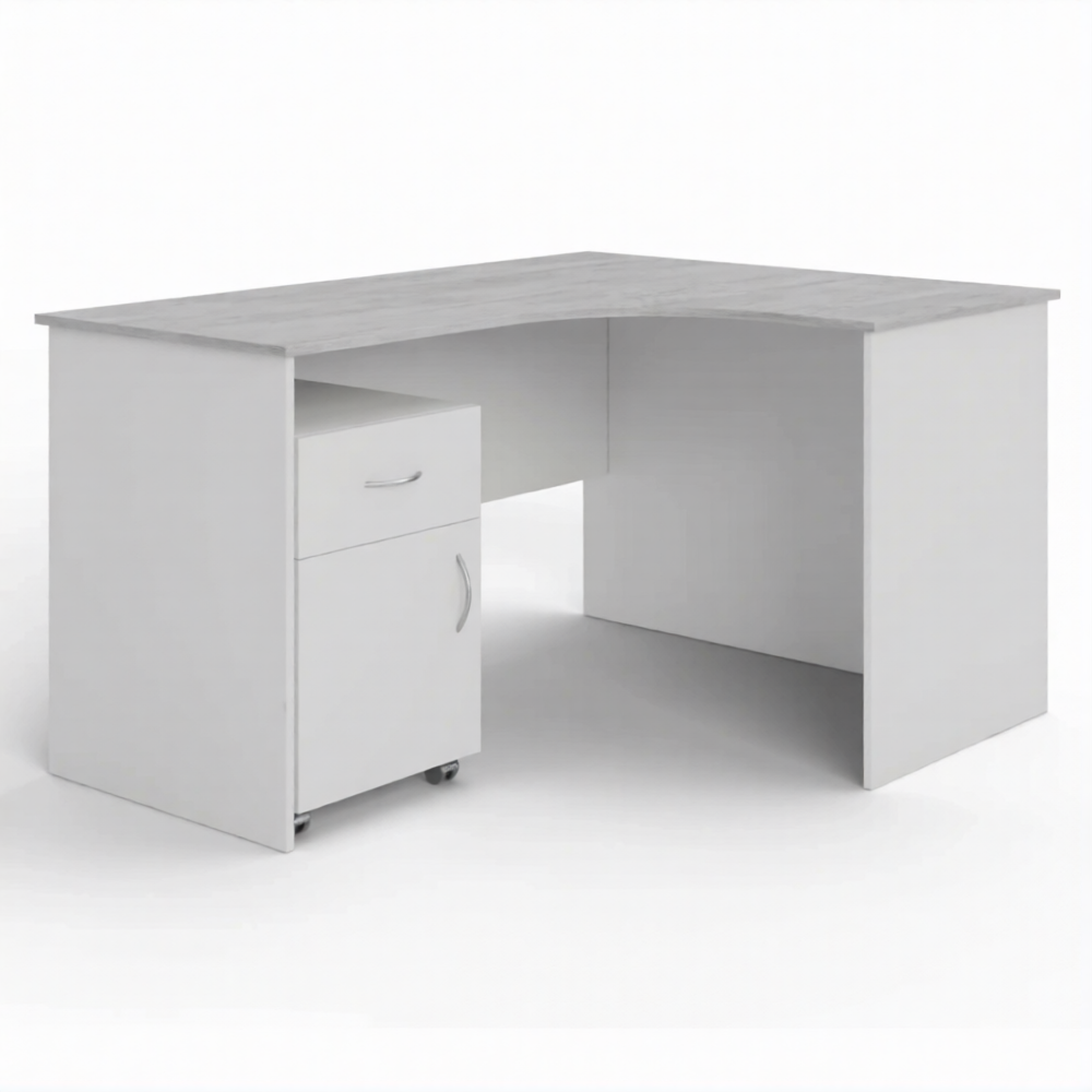 Стол рабочий угловой с тумбой подкатной СУ-1 правый (корпус ЛДСП белый, столеш. ЛДСП дуб канадский)
