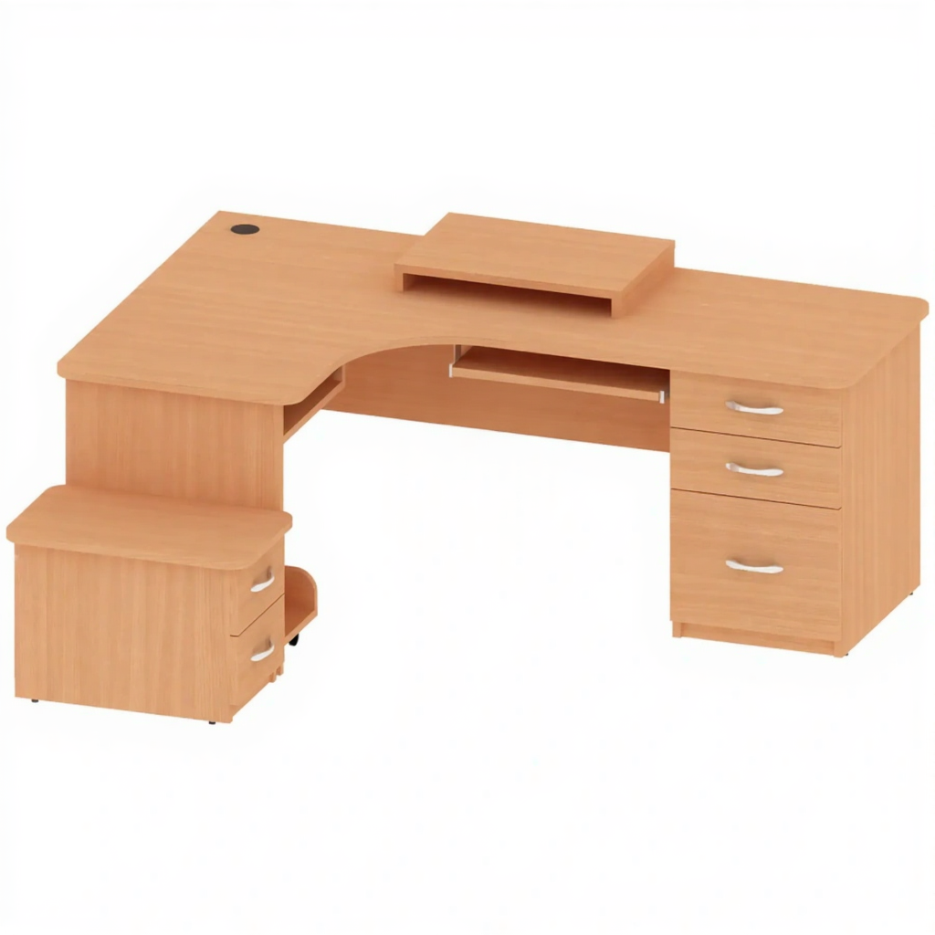 Стол угловой с тумбой ОФ-СТ-175, Бук Бавария Светлый