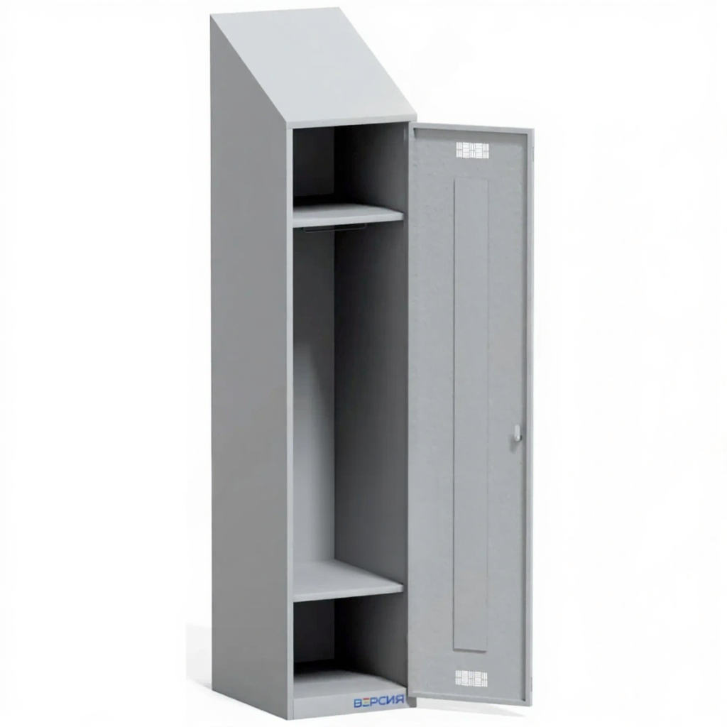 • Металлические односекционные шкафы для одежды с наклонной крышей предназначены для установки в условиях ограниченного пространства. Угол наклона крыши - 45°.