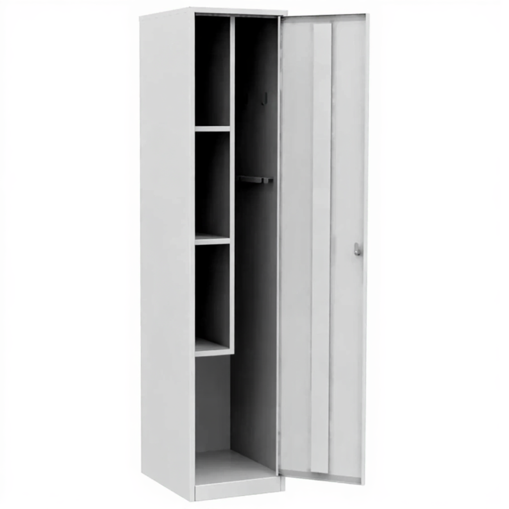 - Универсальность применения в различных сферах — помимо учебных заведений, модель успешно используется в медицинских кабинетах, офисных помещениях, спортивных комплексах и других учреждениях, где требуется компактное и безопасное хранение хозяйственного инвентаря.