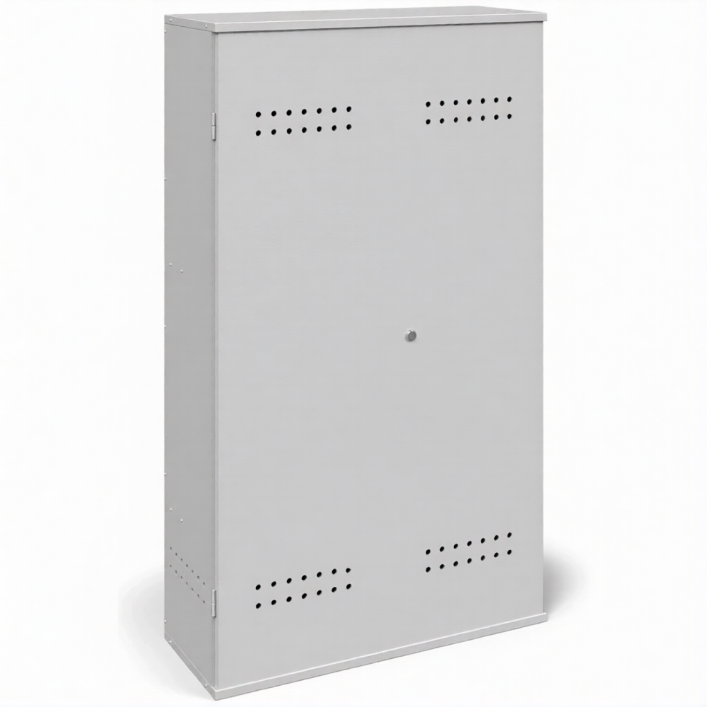 - Обеспечение базовых требований пожарной безопасности — металлический корпус толщиной 1,2 мм обеспечивает необходимую изоляцию баллонов от случайных источников возгорания и искр. Конструкция предусматривает перфорацию или вентиляционные отверстия для естественного воздухообмена, что помогает рассеивать возможные утечки газа и снижает риск создания опасной концентрации, отвечая ключевым требованиям ППР для бытовых и полупромышленных условий.