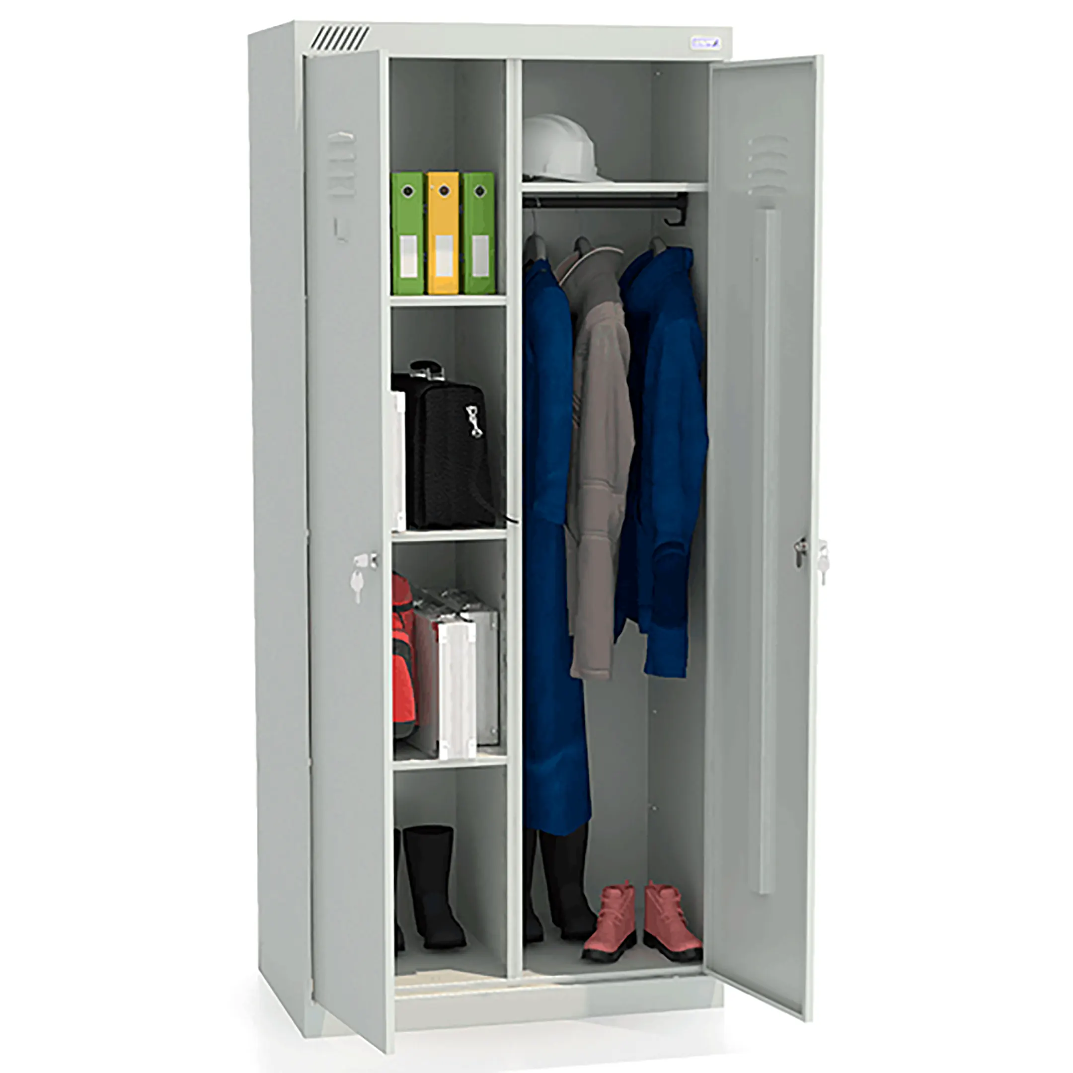 - Многофункциональность и универсальность применения — шкаф подходит для хранения самых разнообразных предметов: от учебных пособий и канцелярских принадлежностей в школах до медицинских инструментов и препаратов в поликлиниках, а также производственного инструмента и хозяйственного инвентаря на предприятиях.